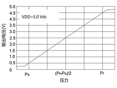 | OUT=A×P B pozornosť: OUT je analógové výstupné napätie merané vo voltoch; P je hodnota tlaku, absolútny tlak, v kPa; Pozrite si tabuľku nižšie pre A a B. |